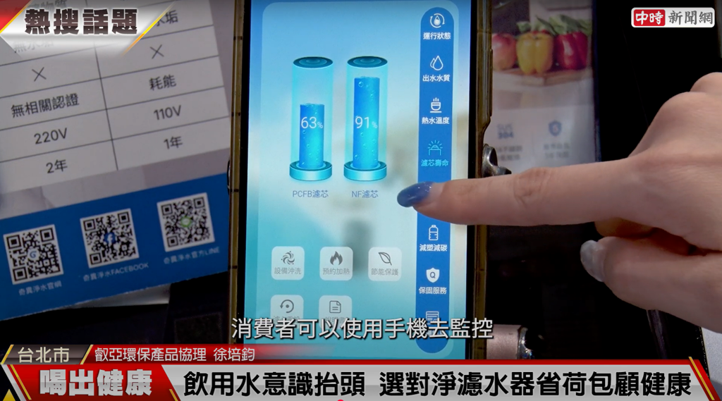 智慧家電更是近年來的銷售趨勢,高階淨水器「極煦」跟中階「極光」同時可支援G+的APP平台,消費者可以使用手機監控用水情況,APP會反映用水狀況、濾芯的壽命與安心漏水提示,智慧兼顧生活起居。